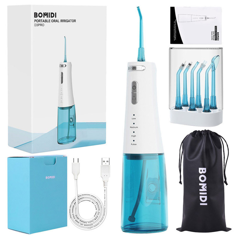 واترجت دستگاهی است که با پاشیدن آب با فشار بالا به دندان ها و لثه ها ذرات غذایی باقی مانده و پلاک میکروبی را از سطوح دندانی و لثه ایی شستشو می دهد. این دستگاه برای افرادی که دارای درمان هایی نظیر ارتودنسی، روکش، ایمپلنت، پروتزهای دندانی و یا بیماری های لثه ای نظیر تحلیل لثه می باشند بسیار ایده آل است. واترجت های دندانی می توانند باکتری هایی که در اعماق لثه ها هستند را به بیرون رانده و از بین ببرند که این ویژگی در دستگاه های دیگر پاک کننده دندان و لثه ها دیده نمی شود. واتر جت قابل شارژر Oral Irrigator D3 Pro BOMIDI با مخزن آب 300 میلی لیتری برای شستشوی بهتر دهان و دندان طراحی شده است.