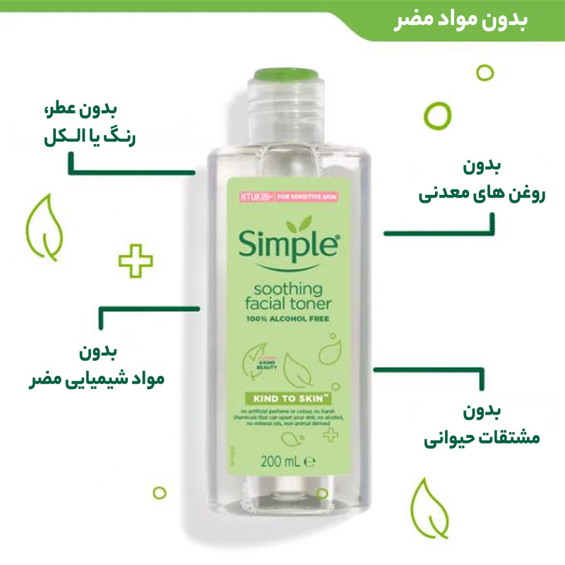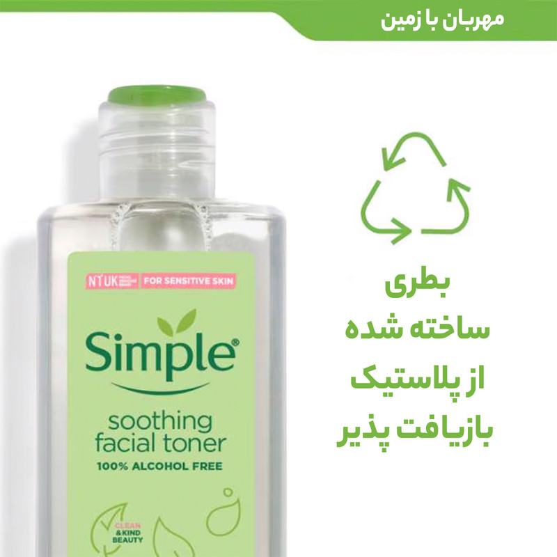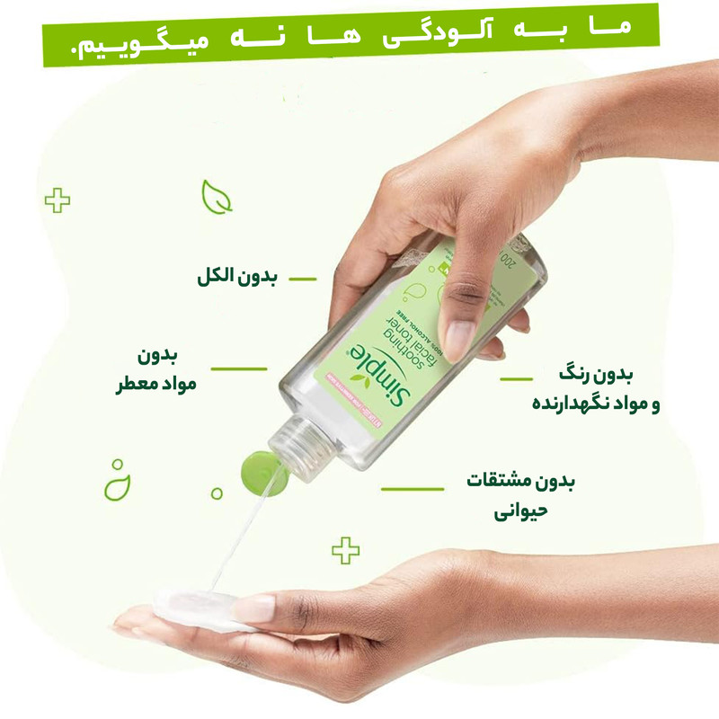 تونر پاک کننده صورت سیمپل مدل Soothing حجم 200 میلی لیتر