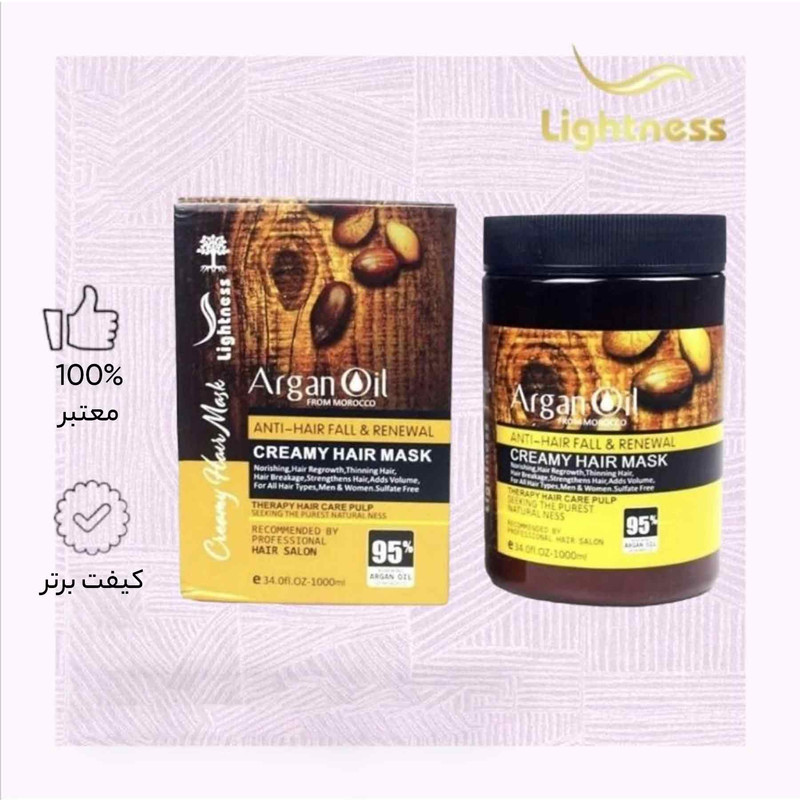 ماسک مو آرگان Lightness به دلیل دارا بودن روغن آرگان و ویتامین E ، باعث درخشندگی و شفافیت موها شده و آنها را از حالت کدر بودن خارج میکند. ماسک مو لایتنس از ریزش موها جلوگیری کرده و باعث استحکام بیشتر تارهای مو میگردد. با استفاده از این محصول موهای شما در برابر عوامل آسیب زنندهای همچون حرارت و رنگ های شیمیایی، محافظت و آسیب کمتری خواهد دید.