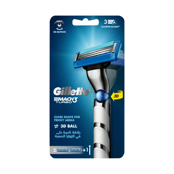 خودتراش 3 لبه ژیلت مدل مچ تری توربو با کمترین فشار بر روی پوست، مناسب اصلاح پوست حساس آقایان می باشد. 3 تیغه نزدیک به هم این دستگاه به اصلاح هرچه بهتر پوست کمک میکند . نوار آبی رنگ بالای تیغه ها به عنوان یک روان کننده به لغزش ژیلت روی پوست کمک می کند و باعث جلوگیری از آسیب به پوست و کمک به اصلاح سریع تر و بهتر می شود. سری این دستگاه انعطاف پذیر و قابل تعویض می باشد. شرکت ژیلت همواره در تلاش بوده است که بهترین محصولات را برای مصرف کنندگان خود عرضه کند. استراتژی ژیلت یعنی ساخت خودتراش های ژیلت با قابلیت تعویض تیغ، در سال 1985 به فکر کینگ ژیلت خطور کرد. از آن پس برند ژیلت خودتراش هایی تولید میکند که قابلیت تعویض سری دارند و راحتی را به مصرف کنندگان ارائه میدهد.