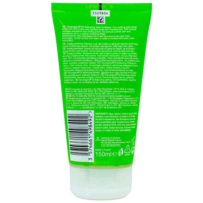 اسکراب نوتروژینا لایه بردار پوست مدل Oil Balancing حاوی عصاره لیمو و آلوئه ورا می باشد. لیمو و آلوئه ورا موجود در این ژل منافذ پوست شما را کوچک تر خواهد کرد. علاوه بر این چربی و آلودگی های سطح پوست را به خوبی پاک می کند و منجر به مسدود شدن منافذ پوست نمی شود. در نتیجه با استفاده از این شوینده به مرور زمان پوستی صاف و بدون جوش خواهید داشت.