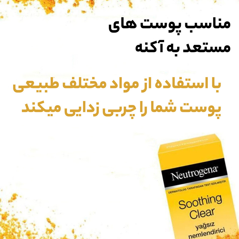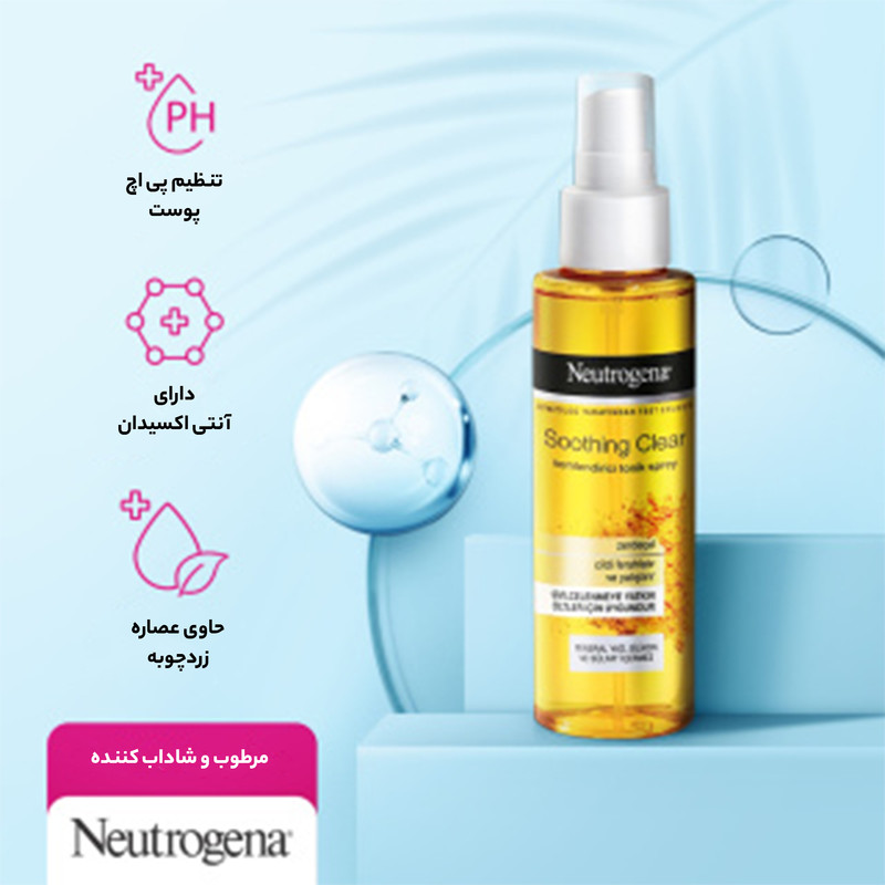 اسپری تونر آبرسان زردچوبه نوتروژینا Neutrogena شاداب کننده و تسکین دهنده برای پوستهای چرب، مختلط رو به چرب و پوستهای حساس مستعد آکنه است.