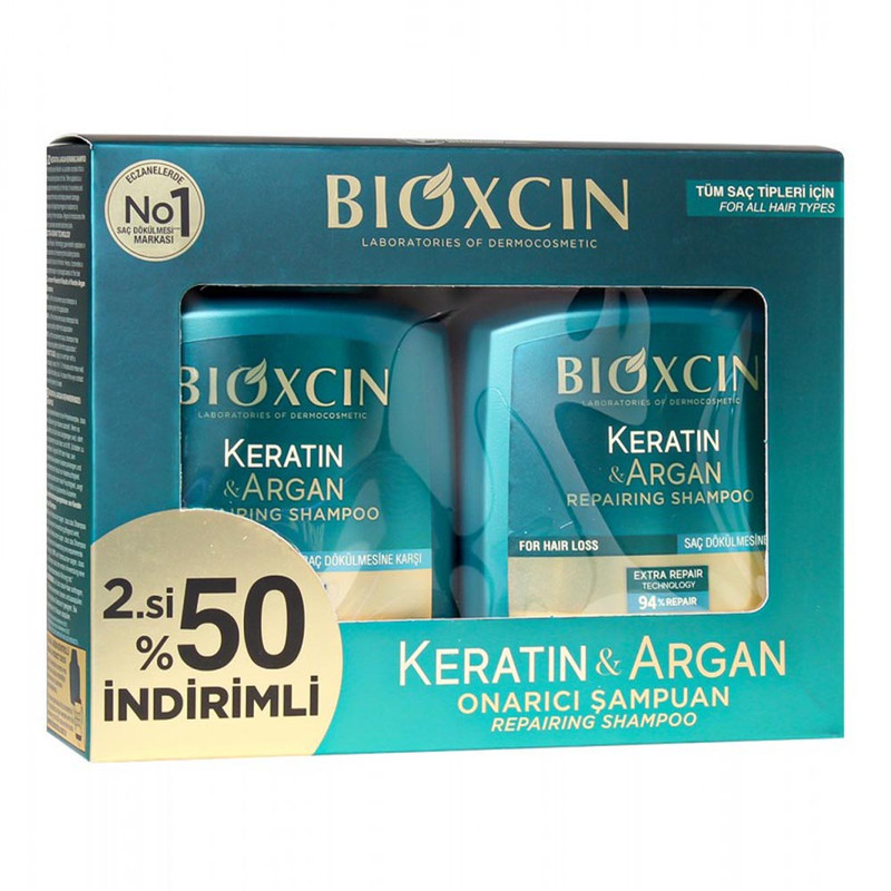 شامپو تقویت کننده و ترمیم کننده مو بیوکسین مدل کراتینه حاوی روغن آرگان حجم 300 میلی لیتر مجموعه 2 عددی