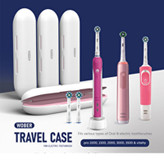 برای جابه جایی و همراه داشتن مسواک برقی اورال بی در مسافرت وجود این کیف ضروری است تا مسواک برقی شما از اسیب و گم شدن در امان باشد. از اکثر مدل های مسواک برقی اورال بی پشتیبانی میکند به جز مدل هایی که در عکس با ضربدر مشخص شده است. در این کیس یک عدد مسواک برقی و دو عدد سری جای میگیرد.