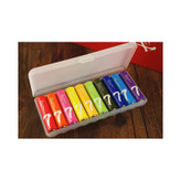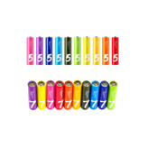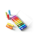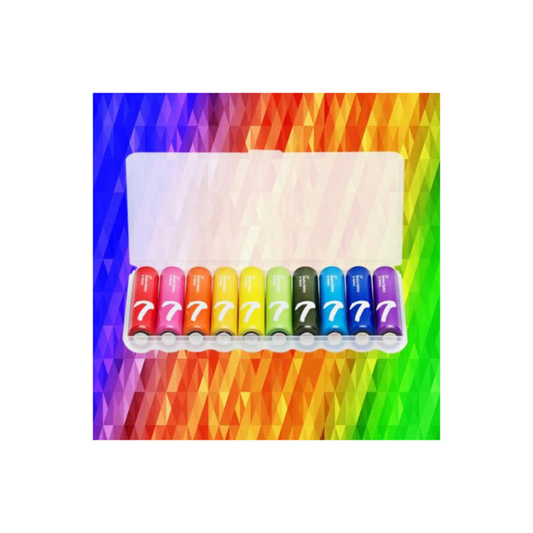در باتریهای موجود در این پک از تکنولوژی باتری آلکالاین استفاده شده و باتریهای آن میتوانند تا سالها انرژی خود را حفظ کنند. این باتریهای 1.5 ولتی در بستهبندی 10 عددی عرضه میشوند و رنگبندی زیبا از جذابیتهای این پک به شمار میرود. این رنگبندی زیبا باعث میشود امکان نگهداری باتریها با هدف کلکسیونی وجود داشته باشد و حتی پس از مصرف هم بتوانید از زیبایی آنها برای دکور کردن اتاق استفاده کنید. باتریهای آلکالاین قابلیت شارژ ندارند؛ اما وجه تمایز آنها با سایر باتریها در ماندگاری و دوام آنهاست. باتریها میتوانند تا سالها در قفسهی فروشگاهها انرژی خود را حفظ کنند و آمادهی مصرف باشند؛ درنتیجه نگران خرید تعداد زیاد این باتریهای باکیفیت و نگهداری آنها در منزل برای روز مبادا نباشید. سلولهای این باتریها بدون افزایش حجم، ظرفیت بیشتری نسبت به باتریهای کربنی دارند و انرژی خروجی آنها روندی یکنواخت و پایدار دارد. اختلافپتانسیل آنها 1.5 ولت است که برای استفاده در اسباببازی، ماوس و کیبورد بیسیم، رادیوهای کوچک و سایر تجهیزاتی که از باتری قلمی تغذیه میکنند، مناسب است. این باتریها در یک محفظهی پلاستیکی مانند مداد شمعی در کنار هم قرار گرفتهاند و برای نگهداری باتریها هم میتوانید از همین جعبه استفاده کنید. باتریهای پک به دلیل رنگارنگ بودن به باتریهای رنگینکمانی معروف شدهاند و میتوانند بهعنوان دکوری خوشرنگ و لعاب، قسمتی از میز کار شما را به خود اختصاص دهند.