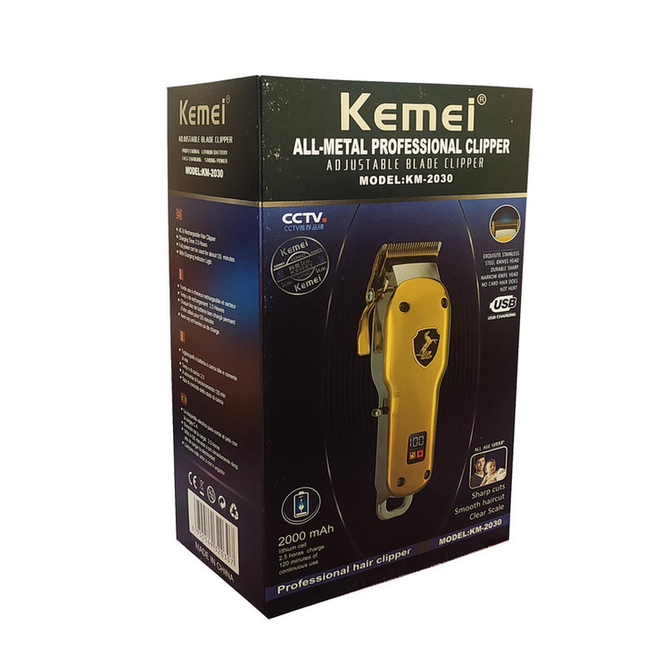 کمپانی معروف و نامدار کیمی , مجموعه ای گسترده از انواع محصولات ارایشی برقی را ارائه کرده است . ما به شما محصول فوق که سری 2030 کیمی می باشد را معرفی میکنیم که دارای ظاهری بسیار زیبا و براق , بدنه تمام فلزی طلایی رنگ, نمایشگر دیجیتالی وضعیت باطری , تیغه ضدزنگ بسیار برنده و مقاوم می باشد . این ماشین اصلاح طوری طراحی شده است که کمترین خستگی را حین استفاده متوجه نخواهید شد و آن فقط به لطف طراحی ارگونومیک بدنه آن است .تیغه های این محصول از استیل ضدزنگ ساخته شده که کاملا مقاوم و خود تیز شونده است . باطری 2000 میلی آمپری این محصول ظرف مدت 2.5 ساعت فول شارژ شده و مدت زمان استفاده از آن حدود 2 ساعت می باشد . کمپانی کیمی درون این پک 8 عدد شانه قفل دار نیز قرار داده است تا اصلاحی با اندازه مقرر داشته باشید . در جهت افزایش عمر مفید دستگاه توصیه میگردد که قبل از استفاده تیغه های محصول توسط روغنی که همراه ان است را روغن کاری کنید . این دستگاه ایده ال بخاطر دارابودن موتور بسیار قدرتمند مناسب استفاده در سالن های حرفه ای و همچنین استفاده شخصی نیز می باشد .