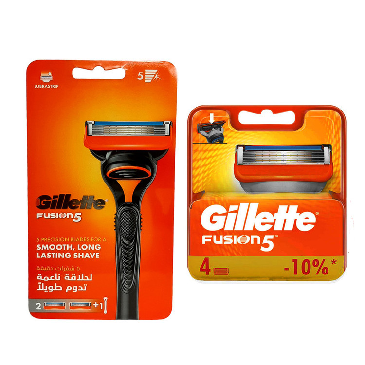 خود تراش ژیلت مدل Fusion 5 دارای تیغههای پنج لبه بسیار با کیفیتی بوده که فقط کافی است یکبار آن را بر روی پوست خود کشیده و اصلاح تمیزی را تجربه کنید. این محصول دارای نوار صابونی بوده که عملکرد این خودتراش را بسیار روان و عالی کرده است. برای داشتن یک خودتراش خوب، باید سه چیز را مد نظر داشته باشید. اول، از تیزی و بُرشِ تیغ اصلاح مطمئن باشید. دوم، برند خودتراش را فراموش نکنید و از کیفیت آن اطمینان حاصل کنید. سوم، از کیفیت و مرغوب بودن بدنۀ آن نیز غافل نشوید. اگر قصد خرید یک خودتراش بسیار با کیفیت و مقرون به صرفه را دارید این محصول بهترین گزینه برای شما است.در کنار دستگاه ژیلت هچنین تیغ یدک ژیلت مدل 5 Fusion Power بسته 4 عددی، برای استفادهی منظم، بیخطر و بیوقفه از این مدل خودتراش عرضه شده است. سری تیغ Fusion، دارای 5 تیغه با روکش استیل است. در بالای این تیغهها، یک نوار ژل غنی شده با ویتامین E و عصارهی آلوئه ورا قرار دارد. این نوار در حرکت روان و بیخطر تیغ بر پوست، بسیار موثر است و پوست را در حین اصلاح و پس از آن آرام و خنک نگه میدارد. این سری، بسیار موثر در اصلاحی سریع و دقیق است. برای تعویض سری خودتراش Fusion، کافیست تا دکمهی بالای دسته را فشار داده و به راحتی با اندکی فشار، سری را درون آن جا داد.از آنجاییکه بیشتر آقایان به طور روزانه صورت خود را اصلاح میکنند، نیاز است تا از خودتراشی با کیفیت استفاده کنند. رعایت در انتخاب محصول، کمک میکند تا شادابی و لطافت پوست از بین نرود. همچنین با خرید این محصول به همراه دستهی آن، میتوان در سفر نیز هر لحظه آراسته ظاهر شد.